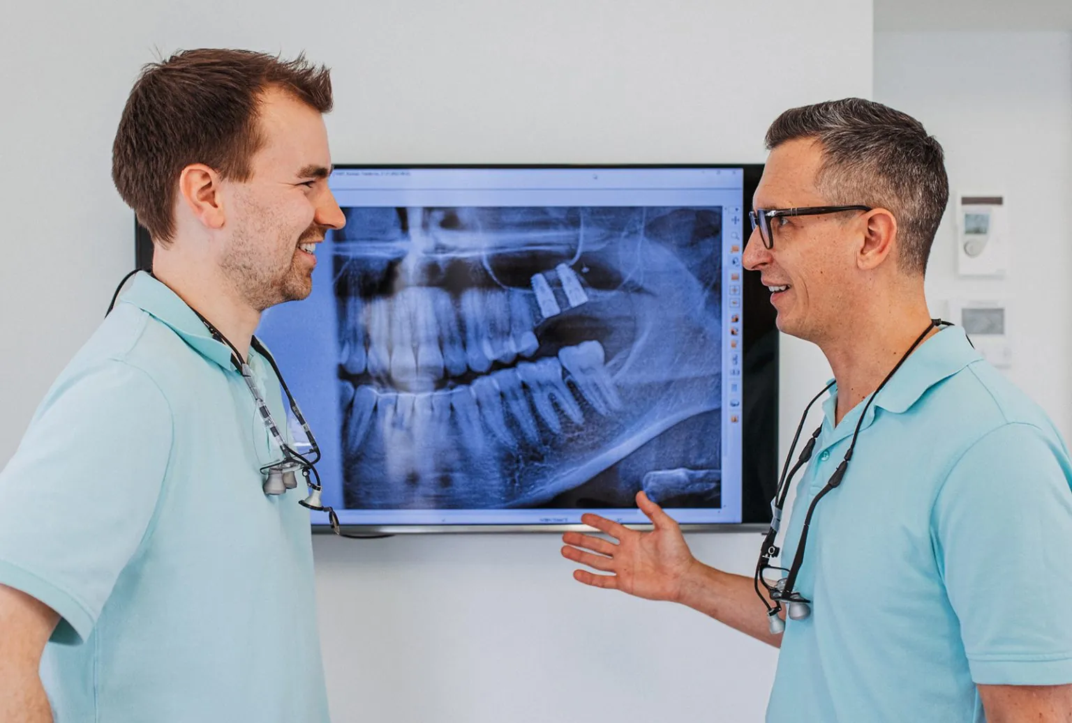 Zahnimplantate sind eine hochwertige Lösung, wenn Zähne fehlen: Sie ersetzen die Wurzel im Kiefer, schützen gesunde Nachbarzähne und beugen Knochenabbau vor. Unsere erfahrene Praxis plant Ihre Implantation individuell, unter Einsatz modernster Technik wie 3D-Röntgen, minimalinvasiver Durchführung und einem stabilen Zahnersatz aus Titan oder Keramik. Ob Einzelzahnimplantat, implantatgetragene Brücken oder Prothesen – wir begleiten Sie Schritt für Schritt: von Beratung & Knochenaufbau über die Operation bis zur Nachsorge. So gewinnen Sie wieder Lebensqualität, Selbstsicherheit beim Lachen, klare Sprache und sicheren Halt beim Essen.